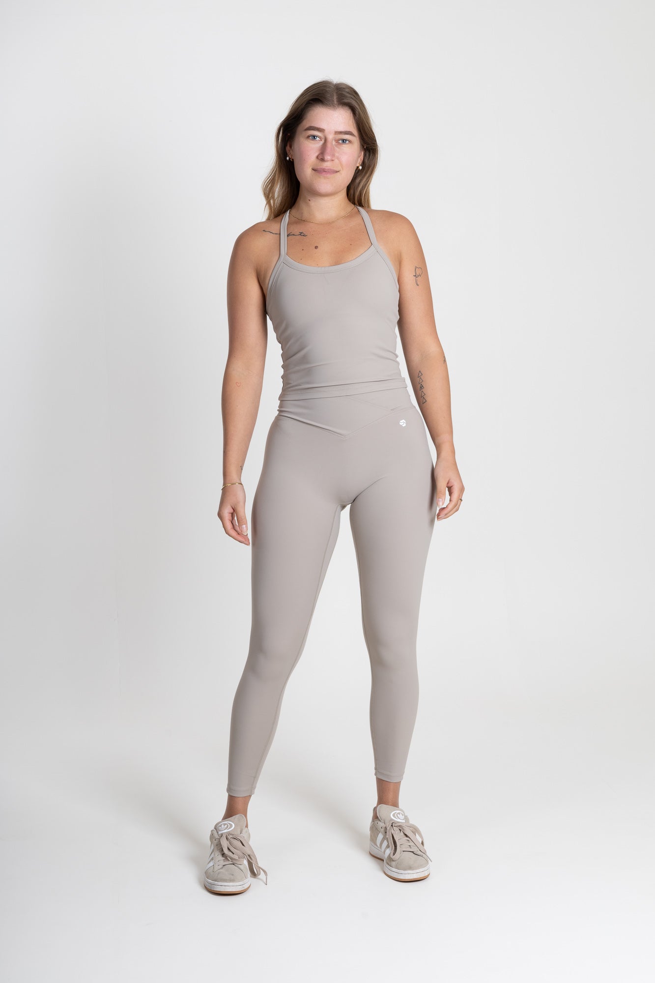 De Strap Tanktop in beige combineert een strakke stijl met betrouwbare ondersteuning, waardoor het ideaal is voor jouw actieve routine. Met een uniek bandontwerp en ingebouwde ondersteuning met verwijderbare cups biedt deze tanktop precies de juiste balans tussen comfort en stabiliteit voor een breed scala aan trainingen.