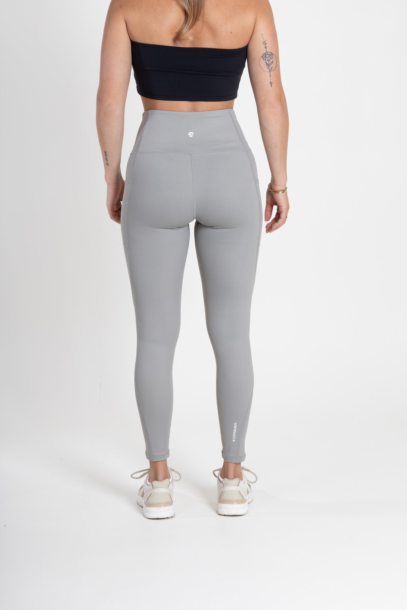 - Gevormde hoge tailleband: De hoge, gevormde tailleband biedt een flatterende pasvorm en betrouwbare ondersteuning bij elke beweging
