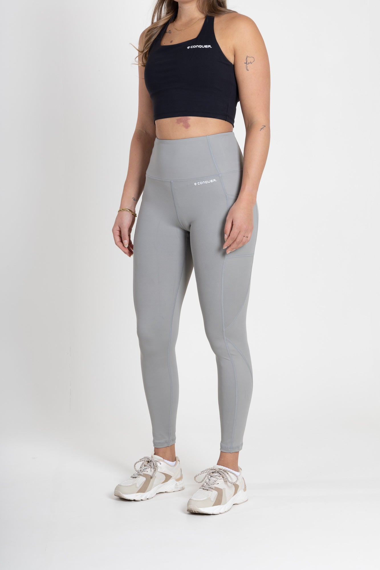 Om uw Conquer-kledingstukken in topconditie te houden, wast u ze in de wasmachine op 30 graden Celsius met een mild wasmiddel. Gebruik geen bleekmiddelen en wasverzachters.